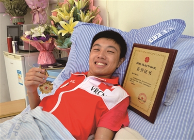 7月20日 捐献当天,当采集设备摆放到身边,我还是有些紧张。捐献过程中,我用手机循环播放着我最喜爱的歌曲——《怒放的生命》,以这样的方式为自己打气加油。 最后,历经五个小时,医护人员从我身体中,采集了288毫升造血干细胞混悬液,我完成了光荣而艰巨的使命。