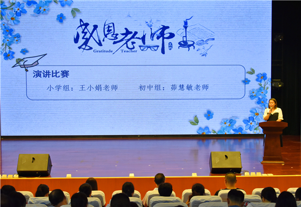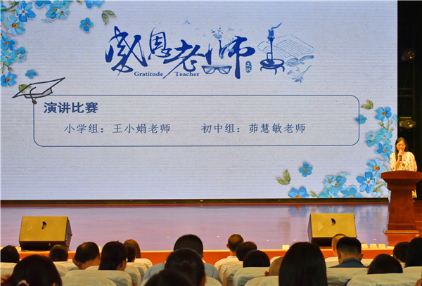庆祝活动在小学部卢玲老师的主持声中拉开了帷幕,一句老师辛苦了,会场响起为自己喝彩的掌声。